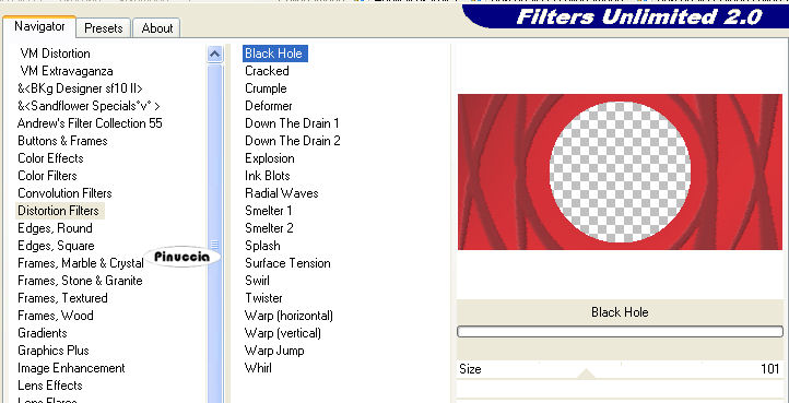 7. Effetti>Plugins>Filters Unlimited - Distorsion - Black Hole, size 101: