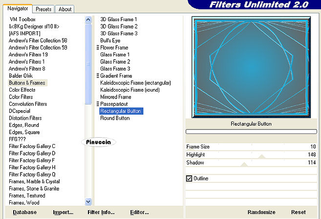 16. Effetti>Plugins>Filters Unlimited 2.0 - Buttons & Frames - Rectangular Botton:
