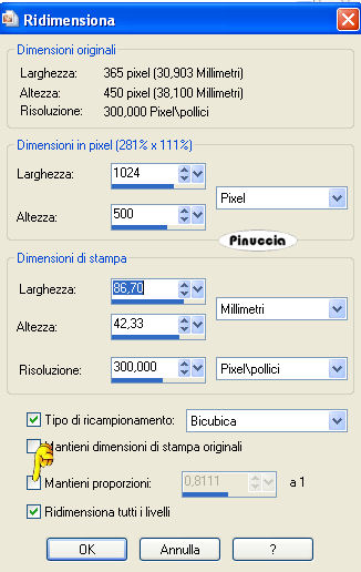 Immagine>Ridimensiona, a 1024 x 500 pixels, mantieni proporzioni non selezionato.