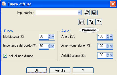 2. Regola>Morbidezza>Fuoco diffuso, con i seguenti settaggi.