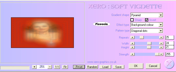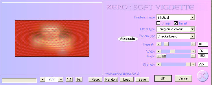 3. Effetti>Plugins>Xero - Soft Vignette, con i seguenti settaggi: