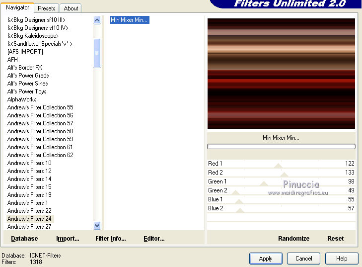 7. Effets>Modules Externes>Filters Unlimited 2.0 - Andrew's Filter 24 - Min Mixer Min, par défaut.