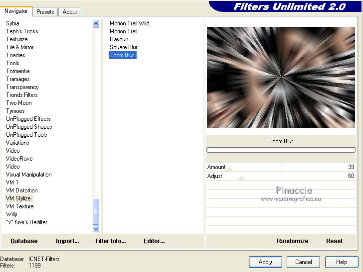 5. Effetti>Plugins>Filters Unlimited 2.0 - VM Stylize - Zoom Blur.