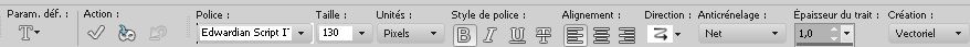 13. Activer l'outil Texte , font Edwardian Script ITC,