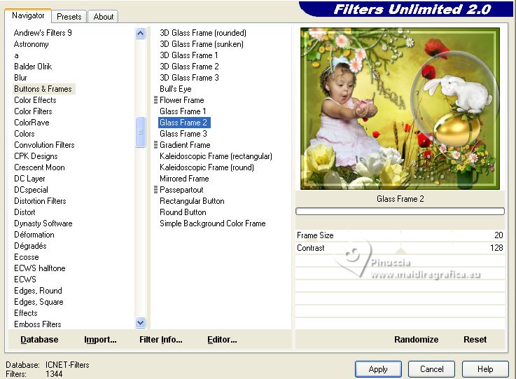 Effets>Modules Externes>Filters Unlimited 2.0 - Buttons & Frames - Glass Frame 2.