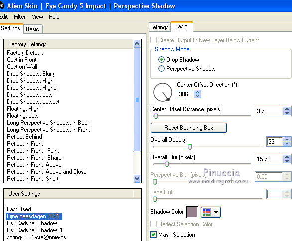 12. Effets>Modules Externes>Alien Skin Eye Candy 5 Impact - Perspective Shadow.