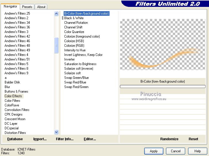 Effetti>Plugins>Filters Unlimited 2.0 - Color Effects - Bi-Color (fore-/background color)