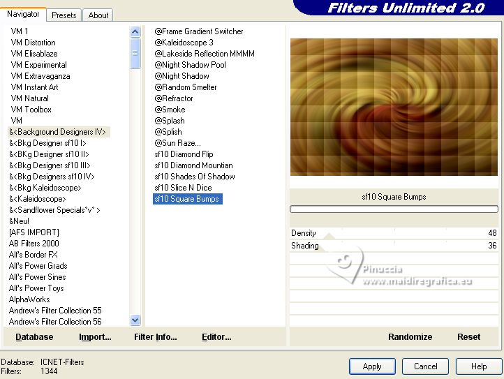 4. Effets>Modules Externes>Filters Unlimited 2.0 - &<Background Designers IV> - sf10 Square Bumps, par défaut.