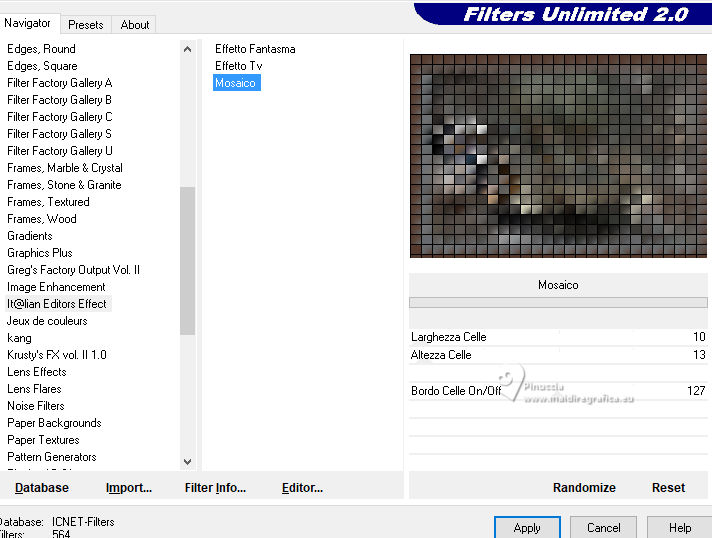 25. Effets>Modules Externes>Filters Unlimited 2.0 - It@lian Editors Effect - Mosaico, par défaut.