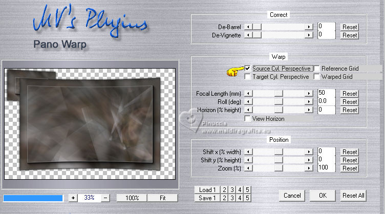 11. Effets>Modules Externes>MV's Plugins - Panowarp.