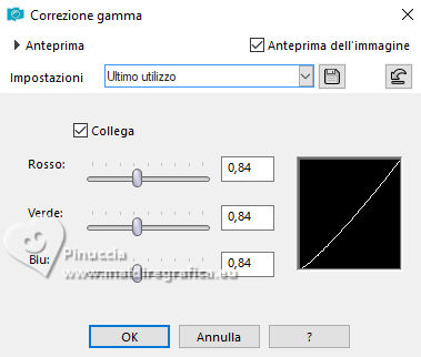 33. Shift+G per attivare Correzione Gamma e imposta i seguenti settaggi, o secondo i tuoi colori.