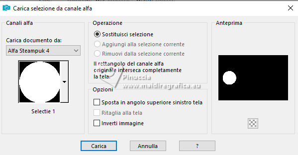 La copia, che sarà la base del tuo lavoro, non é vuota, ma contiene una selezione salvata sul canale alfa.
