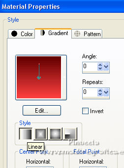 Set your foreground color to Gradient and select the gradient Duotone red (Corel_06_10), style Linear.