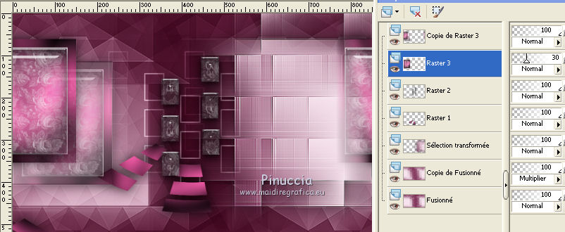 Réduire l'opacité du calque original - Raster 3 - à 30%.
