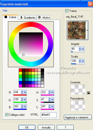 Cerca e seleziona la trama wp_floral 1141, con i seguenti settaggi