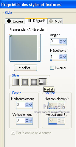 Préparer un dégradé de premier plan/arrière plan, style Radial.