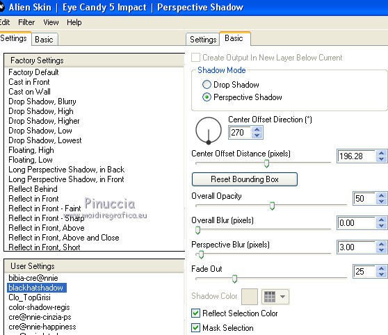 Effets>Modules Externes>Alien Skin Eye Candy 5 Impact - Perspective Shadow