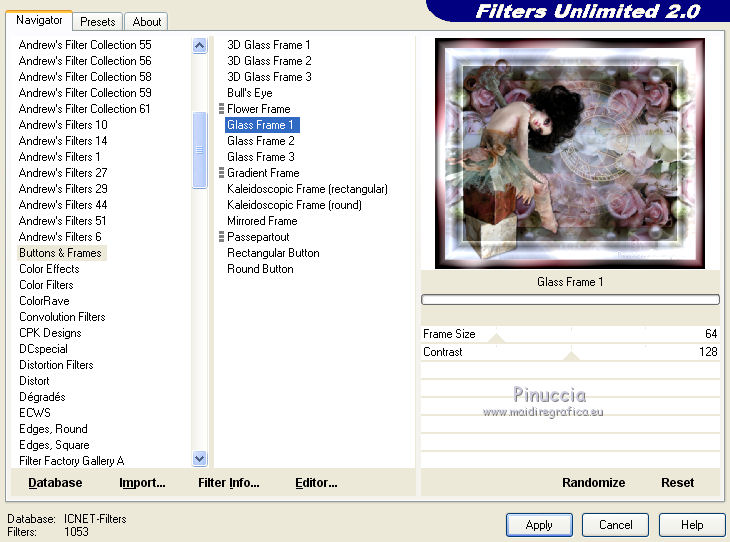 16. Effets>Modules Externes>Filters Unlimited 2.0 - Buttons & Frames - Glass Frame 1, par défaut.
