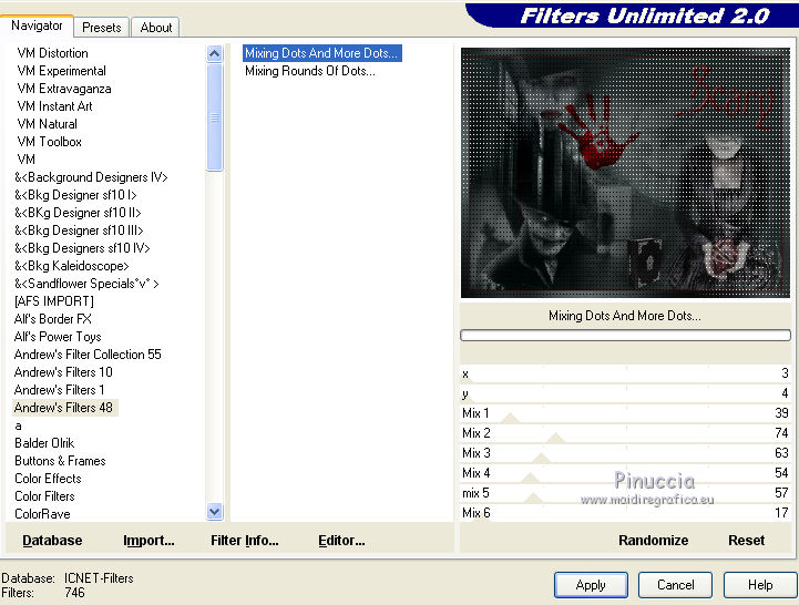 31. Effets>Modules Externes>Filters Unlimited 2.0 - Andrew's Filter 48 - Mixing Dots and more Dots, par défaut.