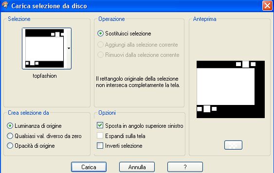 attenzione: è selezionato sposta in angolo superiore sinistro