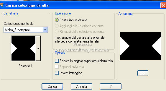 La copia, che sarà la base del tuo lavoro, non è vuota, ma contiene una selezione salvata sul canale alfa.