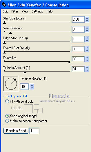 Répéter Effets>Modules Externes>Alien Skin Xenofe 2 - Constellation, cliquer sur Random Seed et ok.