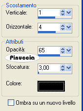 Effetti>Effetti 3D>Sfalsa ombra, con i seguenti settaggi, colore nero.