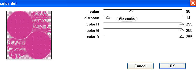 4. Effetti>Plugins>Penta.com - Color Dot, con i seguenti settaggi: