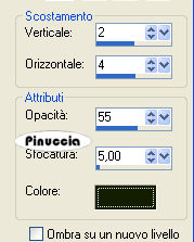 14. Effetti>Effetti 3D>Sfalsa ombra, con i seguenti settaggi, colore nero.