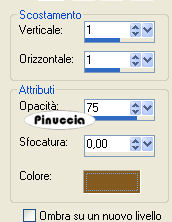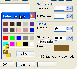 30. Effetti>Effetti 3D>sfalsa ombra, con i seguenti settaggi, con il colore scuro.