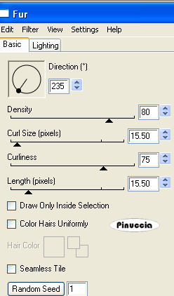 4. Effetti>Plugins>Eye Candy 4000 - Fur, con i seguenti settaggi:
