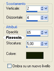 8. Effetti>Effetti 3D>sfalsa ombra, con i seguenti settaggi, colore nero.
