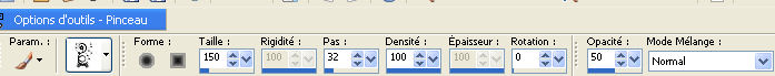 Chercher et sélectionner le pinceau BrushCris16, taille 150, opacité 50.