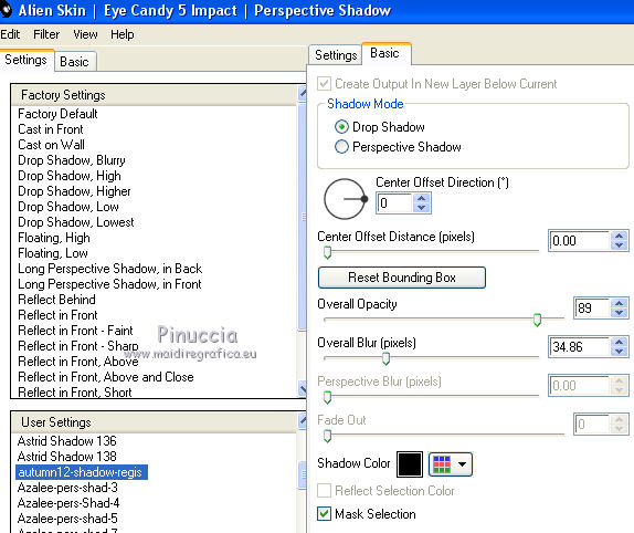 12. Effets>Modules Externes>Alien Skin Eye Candy 5 Impact - Perspective Shadow.