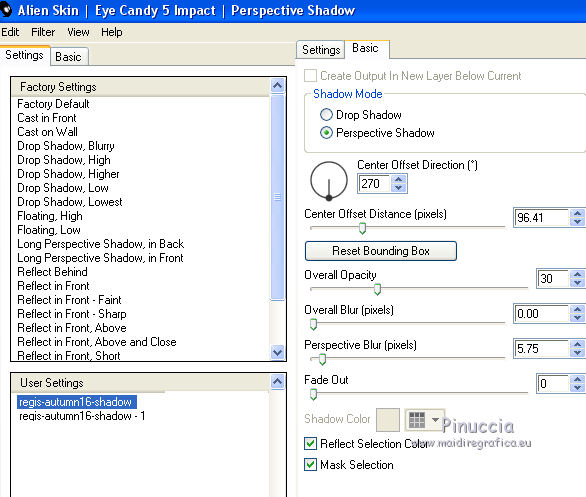 Effets>Modules Externes>Alien Skin Eye Candy 5 Impact - Perspective Shadow