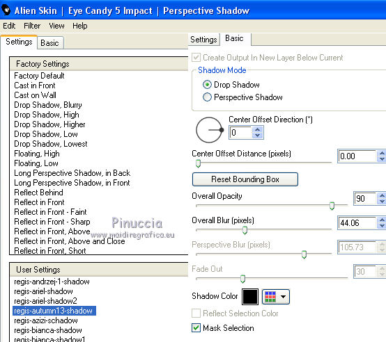 12. Effets>Modules Externes>Alien Skin Eye Candy 5 Impact - Perspective Shadow.