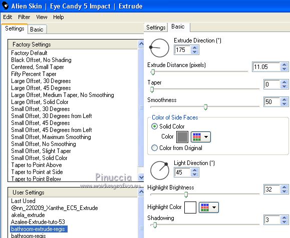 Sélectionner le preset bathroom-extrude-regis et ok.