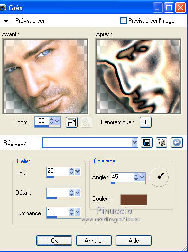 18. Effets>Filtre personnalisé - sélectionner le preset Emboss 3 et ok.