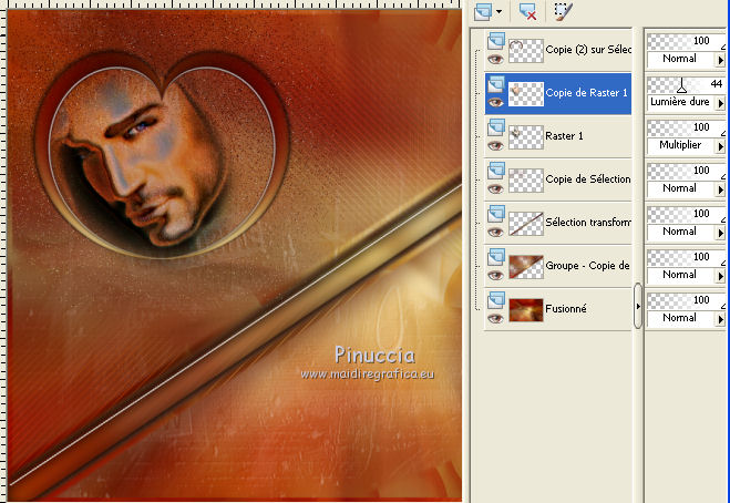 Placer le calque en mode Lumière dure et réduire l'opacité à 44%.