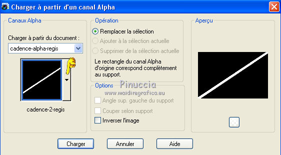 Ouvrir le menu des sélections et charger cadence-1-regis.