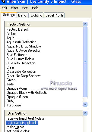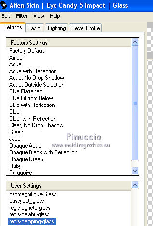 Sélectionner le preset regis.camping-glass 1 et ok.