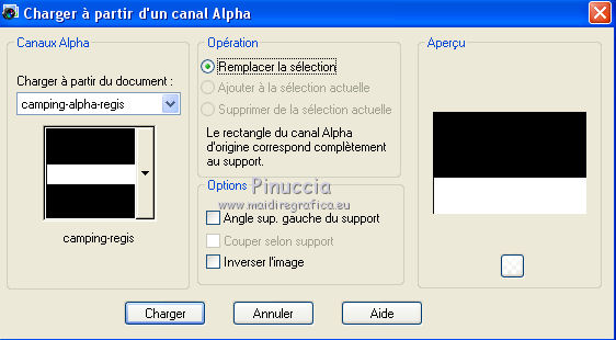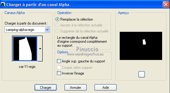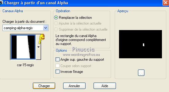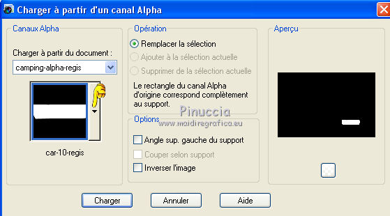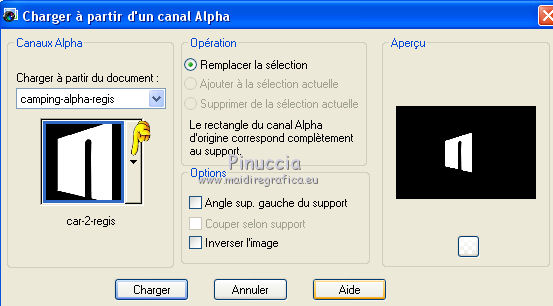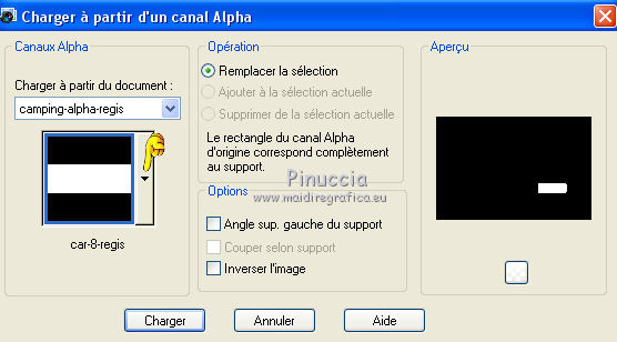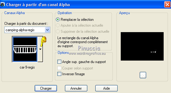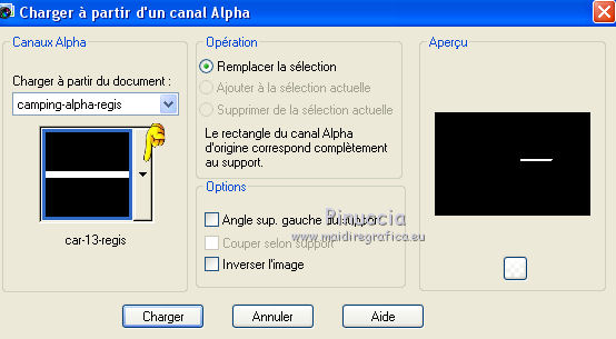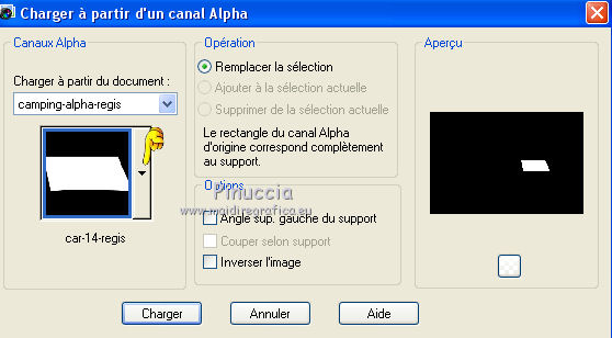 Sélections>Charger/Enregistrer une sélection>Charger à partir d'un canal Alpha.