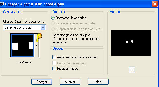 Ouvrir le menu des sélections et charger la sélection car-16-regis.
