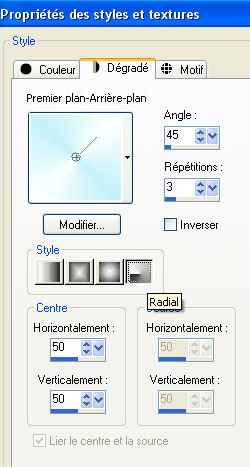 Préparer un dégradé de premier plan/arrière plan, style Radial.