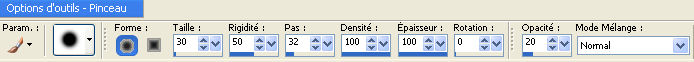 sélectionner le pinceau rond, taille 30, rigidité 50, opacité 20