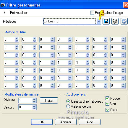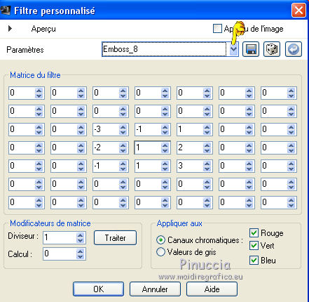 Effets>Filtre personnalisé - sélectionner Emboss 8 et ok.