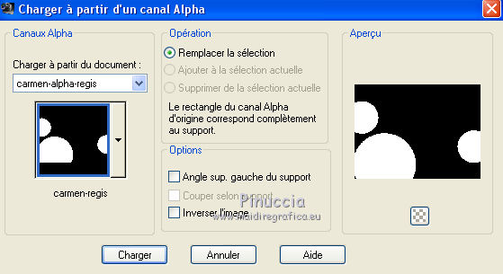 Sélections>Charger/Enregistrer une sélection>Charger à partir d'un canal alpha.