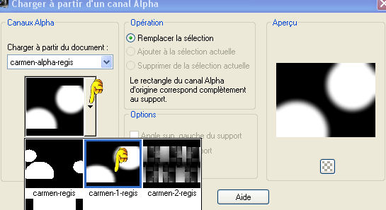 Ouvrir le menu déroulant des sélections et charger carmen-1-regis.