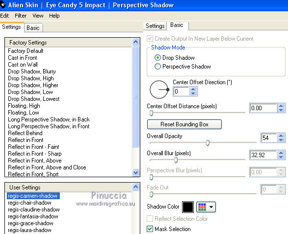 Effets>Modules Externes>Alien Skin Eye Candy 5 Impact - Perspective Shadow.