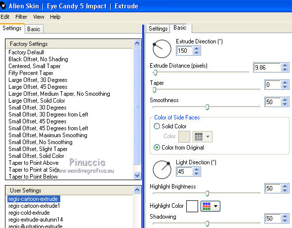 Sélectionner le preset regis-cartoon-extrude et ok.